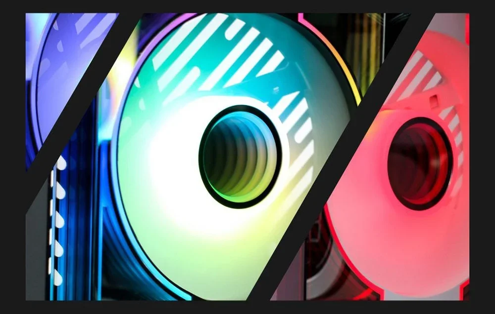 DM8 siūlo adresuojamą ARGB apšvietimą, suderinamą su populiariomis sinchronizavimo sistemomis, tokiomis kaip ASUS Aura Sync, MSI Mystic Light, Gigabyte RGB Fusion ir ASRock Polychrome RGB. Galite rinktis iš 16,8 milijono spalvų ir daugybės dinaminių apšvietimo efektų, kad suteiktumėte savo kompiuteriui unikalų charakterį. Apšvietimas paskirstytas ne tik ant menčių, bet ir ventiliatoriaus šonuose, sukuriant pilną 360° efektą.