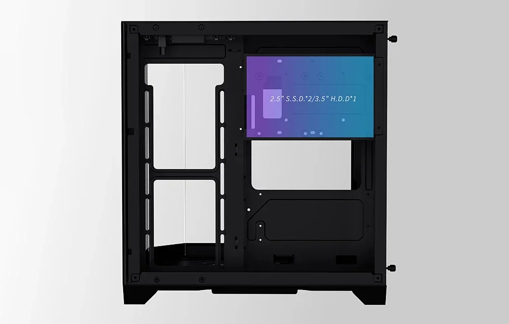 Korpusas išsiskiria trimis skaidriais grūdinto stiklo skydeliais, todėl užtikrina platų, panoraminį vaizdą į kompiuterio vidų. Toks sprendimas leidžia originaliai pabrėžti atskirus komponentus! Pavyzdžiui, naudokite komponentus su RGB apšvietimu, kad suteiktumėte savo įrangai unikalų žaidimų charakterį.