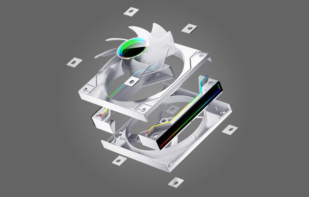 Suteikite savo kompiuteriui unikalų, modernų charakterį. Darkflash DM20 ventiliatorius aprūpintas ARGB apšvietimu, todėl puikiai derės su skaidriu korpusu. Be to, jo baltos mentelės tolygiai paskleidžia šviesą, o dvigubas veidrodinis efektas suteikia gylio. Verta paminėti ir papildomas šviesos juosteles. Taip pat galite sinchronizuoti apšvietimą su pagrindine plokšte (reikalinga 5V 3-Pin jungtis).