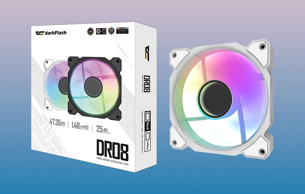 Darkflash DR08 – tai ne tik našumas, bet ir estetika. Su A-RGB apšvietimu, suderinamų su populiariomis RGB sistemomis, tokiomis kaip ASUS Aura Sync, MSI Mystic Light, Gigabyte RGB Fusion ir ASRock Polychrome RGB, galite personalizuoti savo kompiuterio išvaizdą. Rinkitės iš įvairių variantų – vienetinis, 3-in-1 arba 5-in-1 – ir sukurkite unikalią atmosferą, atspindinčią jūsų stilių.