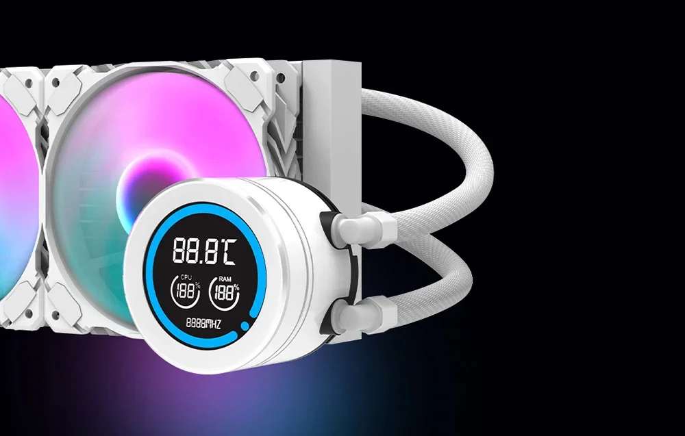 Darkflash DN-D360 – tai galingas 360 mm vandens aušintuvas, užtikrinantis stabilų procesoriaus veikimą esant žemoms temperatūroms. Jis turi varinį vandens bloką ir aliuminio radiatorių efektyviam šilumos išsklaidymui, kas yra būtina, kai sistema stipriai apkrauta. Trys 120 mm ventiliatoriai su hidrauliniais guoliais, PWM valdymu ir ARGB apšvietimu garantuoja optimalų oro srautą ir tylų veikimą. LCD ekranas leidžia stebėti procesoriaus ir RAM temperatūrą, o IIR+EPDM vamzdeliai užtikrina aukštą atsparumą temperatūrai ir dizaino patvarumą.