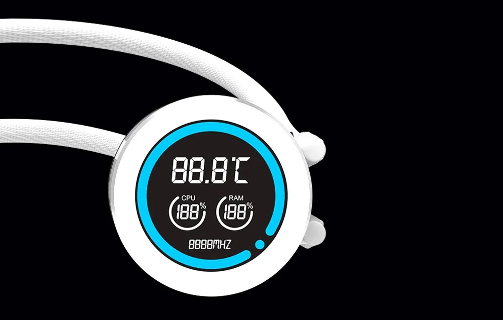 Vandens blokas turi 2,1 colio LCD ekraną su 480x480 pikselių raiška ir 16,7 milijono spalvų. Jis teikia informaciją apie procesoriaus (CPU), RAM temperatūrą ir pompos greitį, leidžiant stebėti parametrus tiesiogiai ant aušintuvo. Tai palengvina sistemos pritaikymą pagal jūsų poreikius. Darkflash produktas taip pat veikia su specialia programine įranga, leidžiančia pilnai valdyti aušinimo nustatymus ir stebėti sistemos našumą. Dėka intuityvios sąsajos galite reguliuoti ventiliatorių greitį ir stebėti procesoriaus bei kitų komponentų temperatūrą.