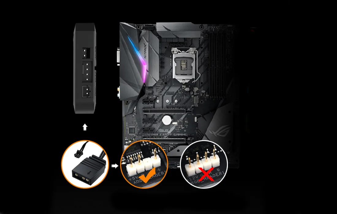 Produktas palaiko ASUS, MSI, GIGABYTE ir ASROCK. Taip pat galima sinchronizuoti apšvietimo efektus su kitais A-RGB produktais per pagrindinę plokštę. Valdiklis suderinamas su 5V/3 Pin A-RGB jungtimis. Nesuderinamas su 12V/4 Pin jungtimis.