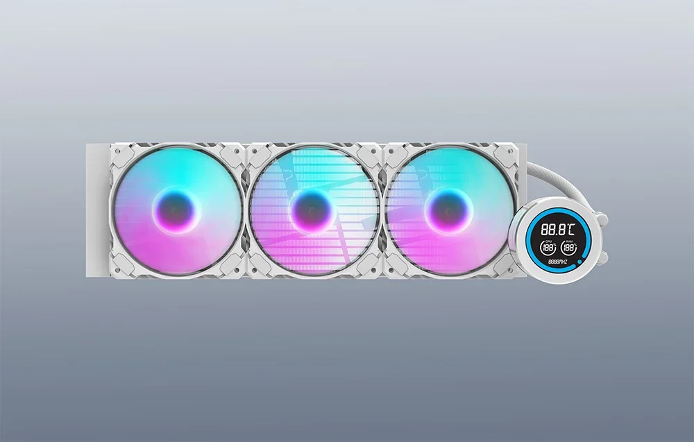 Darkflash DN-D360 – tai galingas 360 mm vandens aušintuvas, užtikrinantis stabilų procesoriaus veikimą esant žemoms temperatūroms. Jis turi varinį vandens bloką ir aliuminio radiatorių efektyviam šilumos išsklaidymui, kas yra būtina, kai sistema stipriai apkrauta. Trys 120 mm ventiliatoriai su hidrauliniais guoliais, PWM valdymu ir ARGB apšvietimu garantuoja optimalų oro srautą ir tylų veikimą. LCD ekranas leidžia stebėti procesoriaus ir RAM temperatūrą, o IIR+EPDM vamzdeliai užtikrina aukštą atsparumą temperatūrai ir dizaino patvarumą.