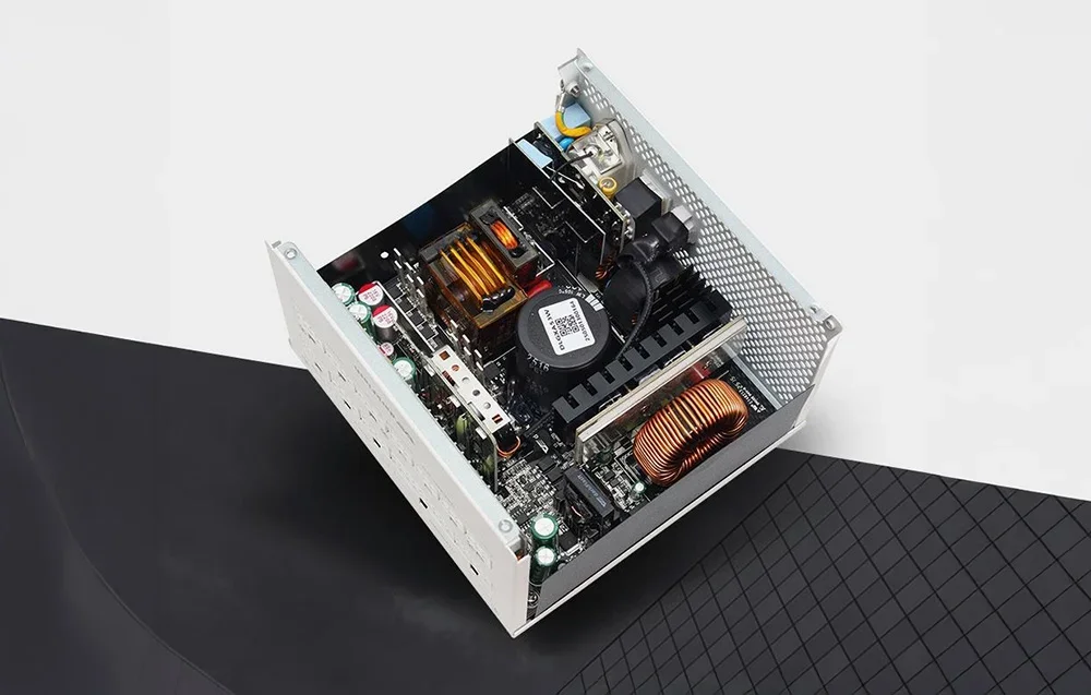 Maitinimo bloko konstrukcijoje naudojami japoniški elektrolitiniai kondensatoriai, skirti darbui iki 105°C temperatūroje. Sistema paremta impulsiniais transformatoriais, atsakingais už galios perdavimą iš įėjimo į išėjimą, taip pat viduje yra EMI filtrai elektros trukdžiams iš tinklo mažinti. Be to, naudojami šilumos sklaidikliai, siekiant sumažinti šilumos generavimą maitinimo bloko viduje.