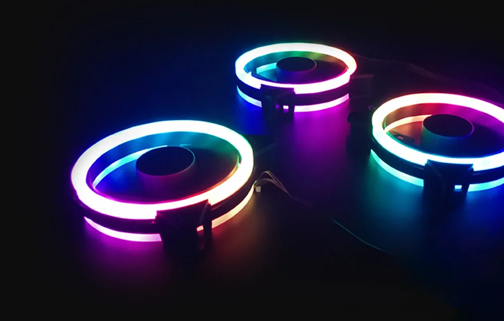LED apšvietimas suteikia jūsų kompiuteriui originalų žaidimų charakterį. Dvigubi RGB žiedai garantuoja nuostabų efektą ir gali puikiai papildyti jūsų techninę įrangą. Be to, ventilatoriaus dizainas buvo kruopščiai apgalvotas, todėl skleidžiama šviesa stebina ryškumu ir ryškiomis spalvomis.
