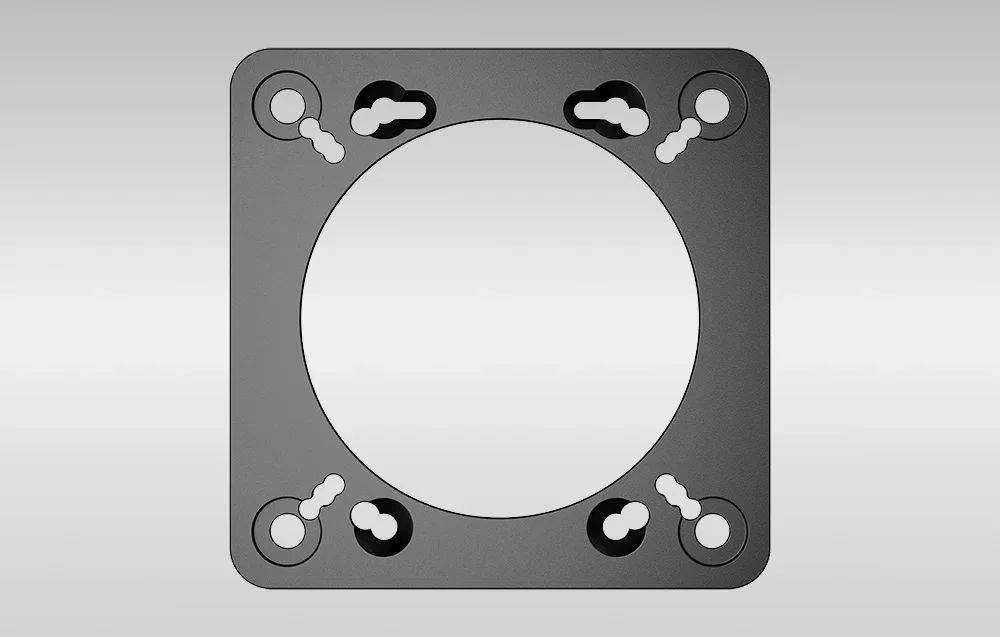 Plokštelė pagaminta iš lengvo, bet patvaraus aliuminio lydinio. Dėl to ji išlaiko standumą, atsparumą dilimui ir nedidina viso rinkinio svorio. Ideali Moza Racing sistemoms.